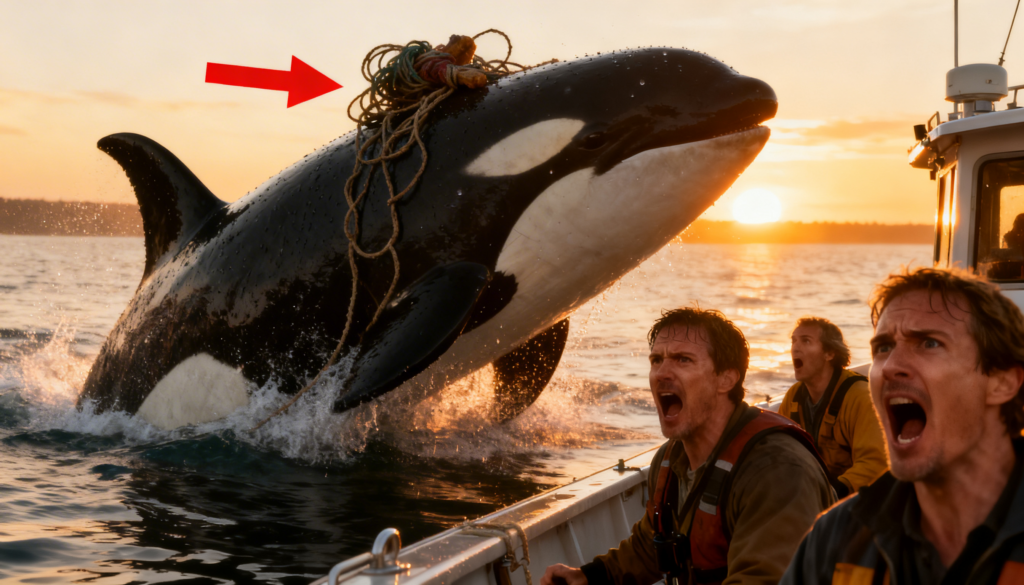 It started as a dark shadow gliding beneath the surface, keeping perfect pace with the vessel. For twenty minutes, the crew watched in silence as a massive orca circled them, refusing to leave. It wasn’t hunting, and it wasn’t playing. When the captain finally grabbed his binoculars to look at the creature’s back, he saw something that made his heart stop. This wasn’t a random encounter—the whale was asking for something.