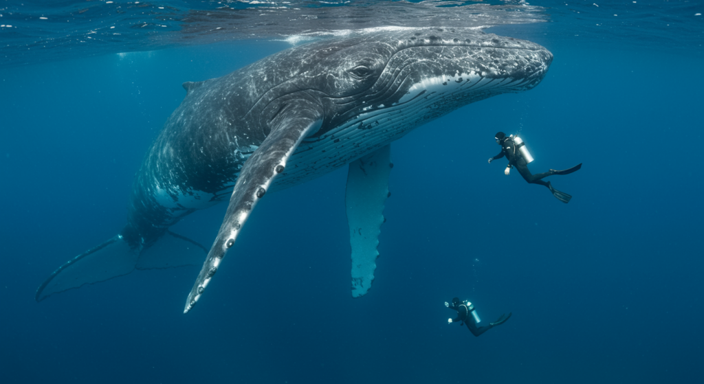 The weight of the whale was staggering. Every time Nan tried to create distance, the giant nudged her back, its rough skin scraping against her diving suit. She felt the raw power of an animal that could end her life with a single flick of its tail.