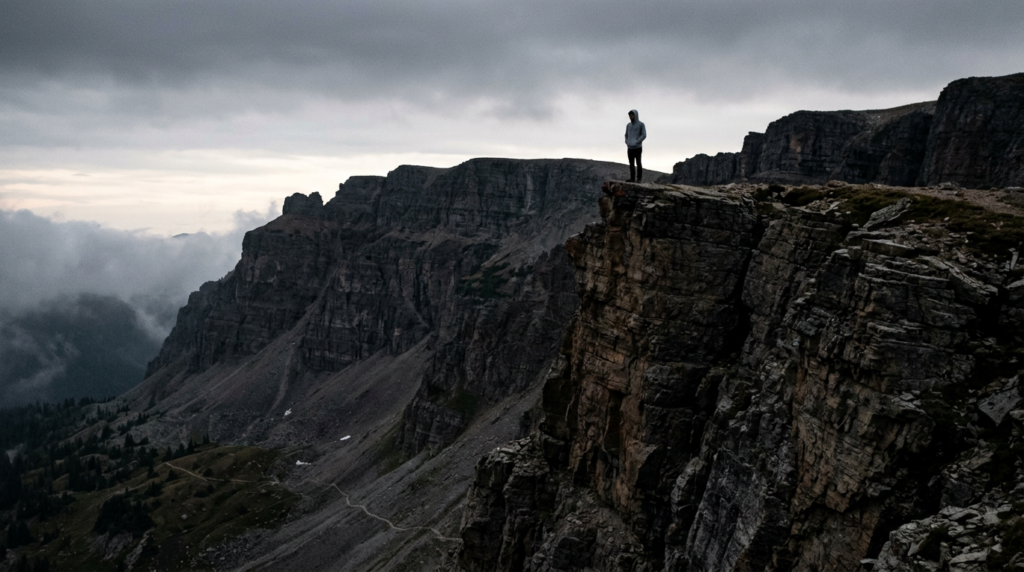 In the distance, standing on a jagged ridge where no trail existed, was a figure. It was thin, tall, and dressed in a light grey hoodie, standing perfectly still against the greenery.
